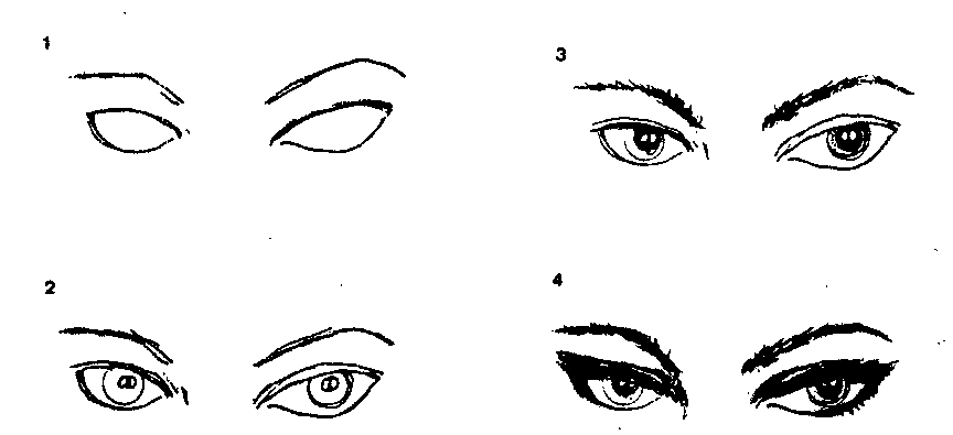 2.再畫服珠、眼珠上部約有五分之—被上眼皮所蓋為宜.另外眼珠內(nèi)的光澤點(diǎn)必需預(yù)先圈出。